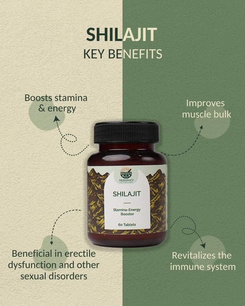The breathtaking Himalayas are home to this heavenly ingredient, Shilajit. It slowly develops over ages as a result of certain plants gradually decomposing under the influence of microorganisms. For many years, people have been aware of its therapeutic benefits. Dr Dassan’s Ayurveda brings you Shilajit tablets that are easy to consume and give you energy and help building endurance throughout the day. These have been proven effective as a stimulant of cognitive activity in humans. Moreover, its Rasayana and anti-aging properties have been known for years. This rejuvenator helps relieve general weakness of the body. Regular use of Shilajit aids the immune system.